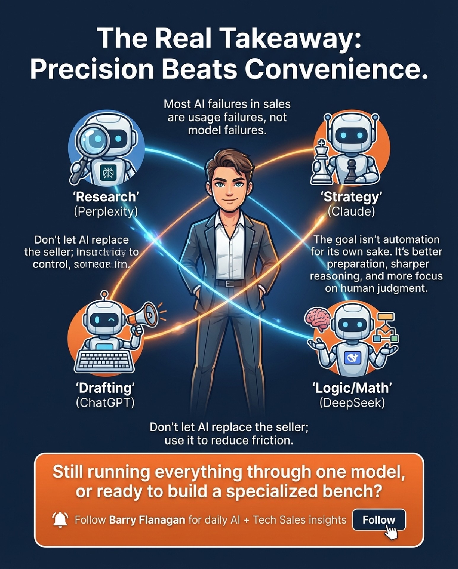 You know the type. One AI for everything. ChatGPT handles research, strategy, emails, pricing logic, competitive intel.